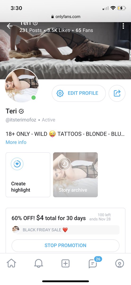 Hey there, I'm Teri! Welcome to my sultry corner of the internet, where I share exclusive content you won't find anywhere else. As an OnlyFans model, I love connecting with my fans and creating a space where we can explore our desires freely. Join me for a peek into my world, where I'll tantalize you with my steamy photos and videos. Let's make some unforgettable memories together! Subscribe now to see more of what I have to offer and let's have some fun. Can't wait to see you there!
