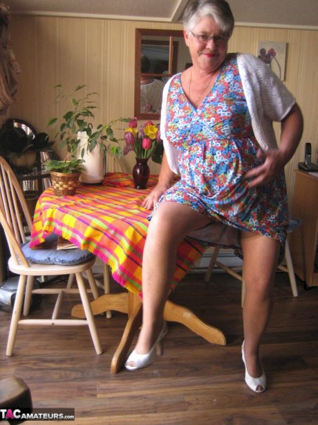 Fat granny Girdle Goddess exposes her huge boobs in a girdle and nylons