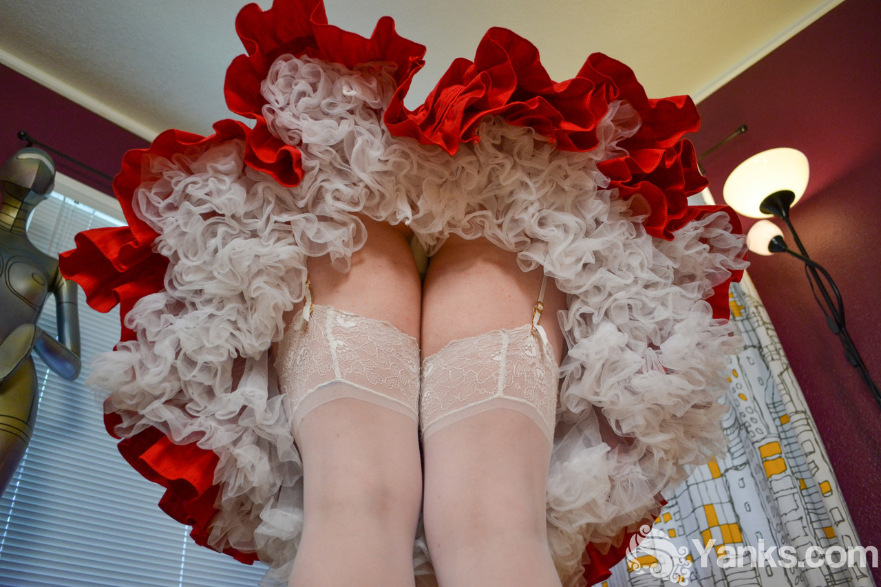 Amateur girl removes her Victorian period attire before finger fucking