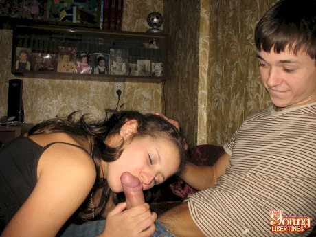 Brunette teen Tanya gives her boyfriend a gentle BJ & handjob before fucking