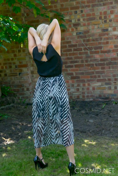 Busty blonde Jodie takes off her clothes outdoors to sun her saggy tits