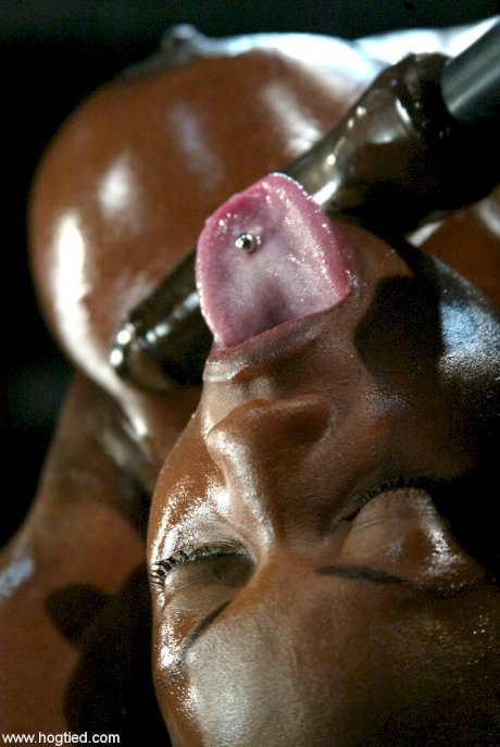 Busty ebony MILF Jada Fire gets pounded & face fucked with a dildo in bondage