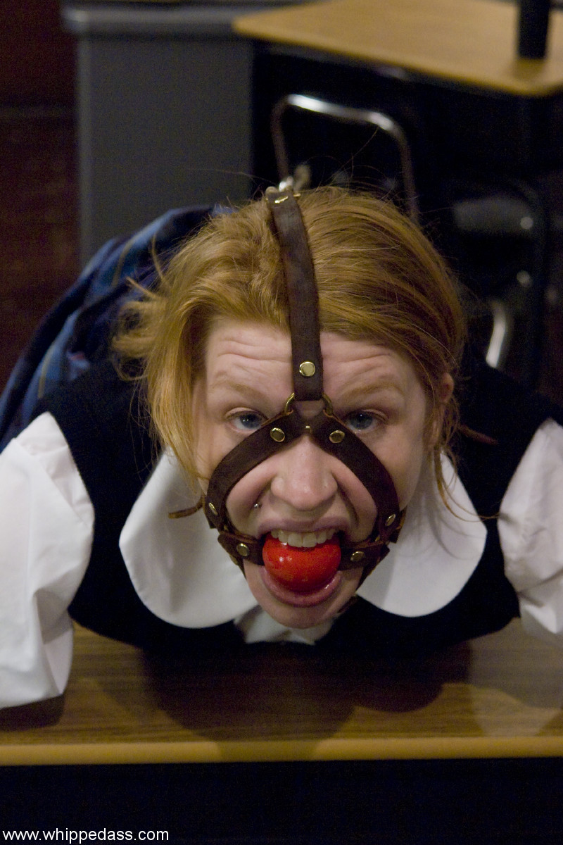 Buxom teacher Daphne Rosen gags, fingers and toys ginger student Madison Young