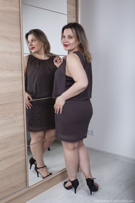 Chubby brunette Ellariya Rose undresses and spreads her hairy pussy