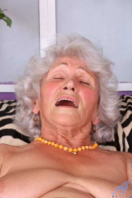 Grey haired granny Betty loses her dress and rubs her hairy vagina