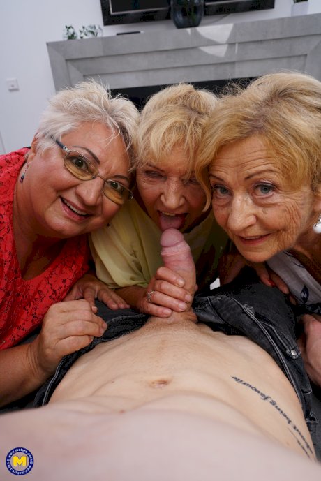 Horny grannies Babet, Ilya & Marina T. have a hot 3some with a slender toy boy