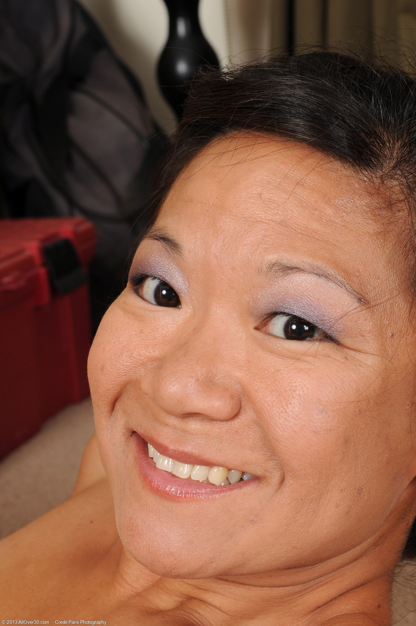 Hot Asian MILF Samantha W unveils her big butt and rubs her juicy cunt