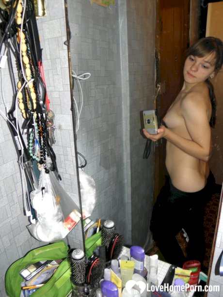 Hot teen with natural tits undresses and takes sexy homemade selfies