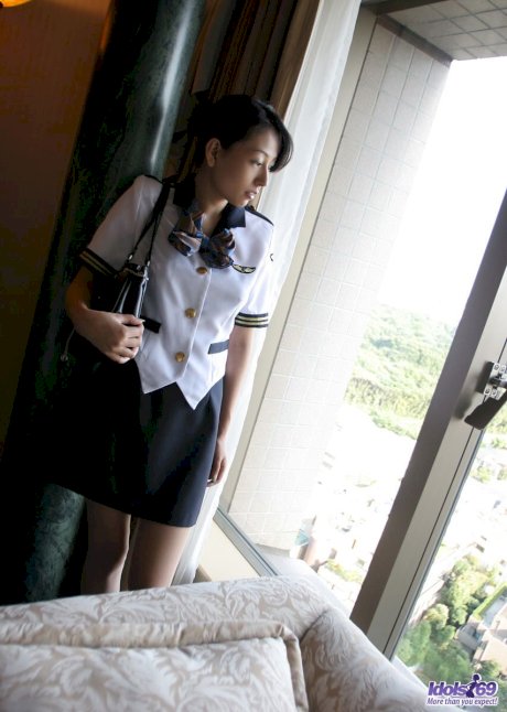 Japanese flight attendant Shiho disrobes to thong underwear after an excursion