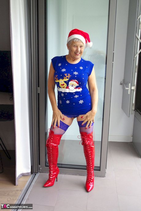 Mature amateur Savana looses her saggy tits and pussy from naughty Xmas attire