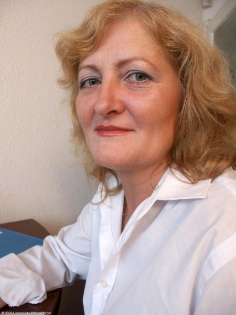 Mature office lady Eva exposes her natural tits & her tasty pussy at work