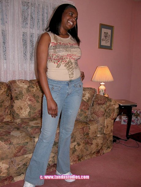Petite ebony fatty Charm strips & shows her big tits & ass at a casting