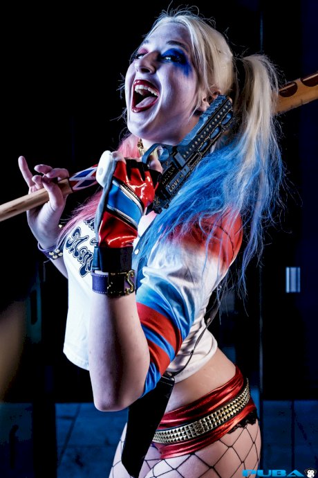 Pigtailed blonde in slutwear Leya Falcon lifts her shirt & shows her tits