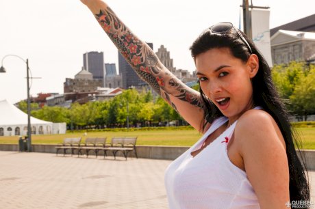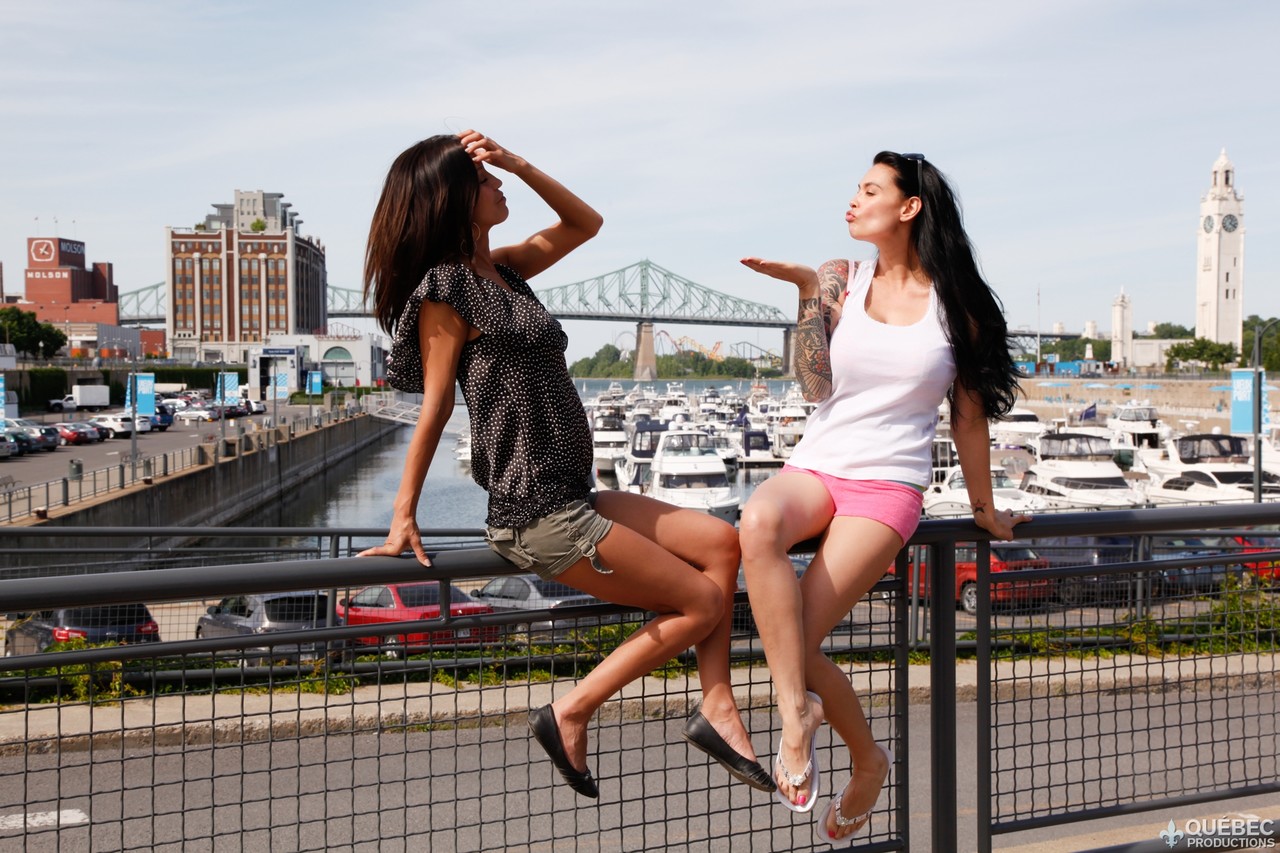 Pornstar Tera Patrick poses with Quebecois slut Amy Lee in sex city Montreal
