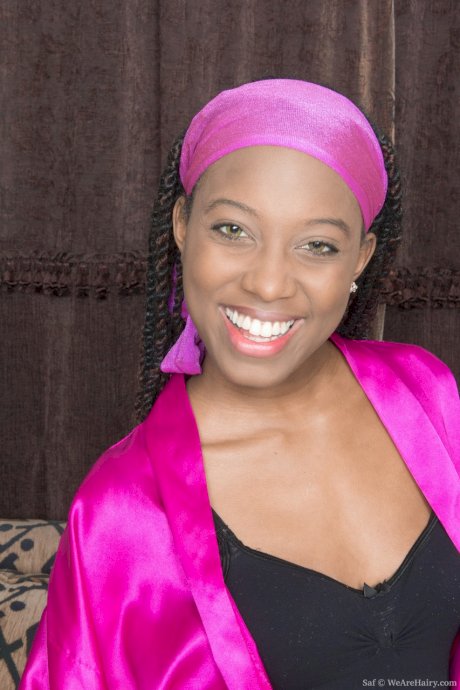 Skinny Saf loses sexy lingerie and reveals her hairy ebony crotch