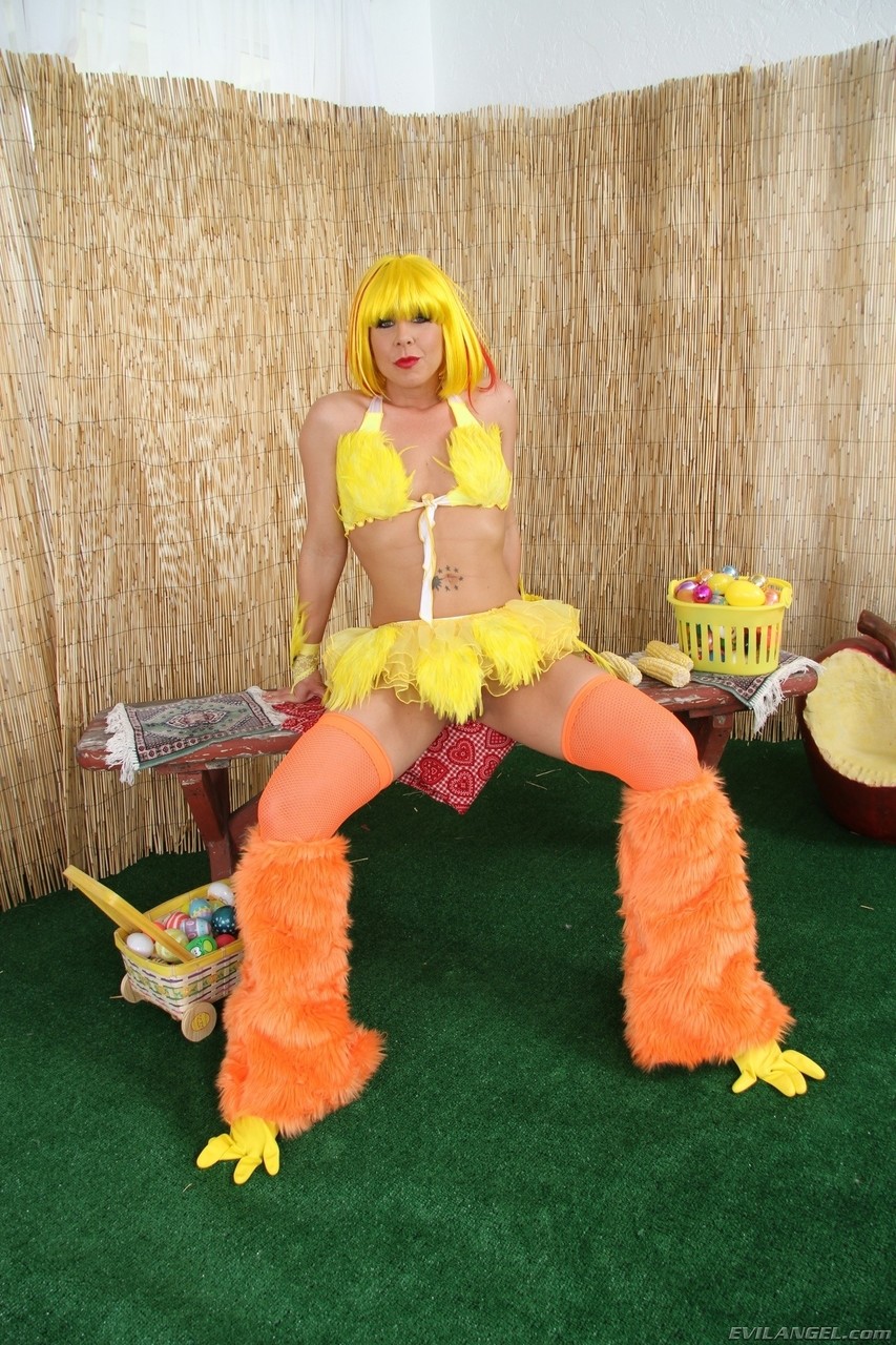Slutty pornstar in yellow uniform Julie Night showing big tits and ass in solo