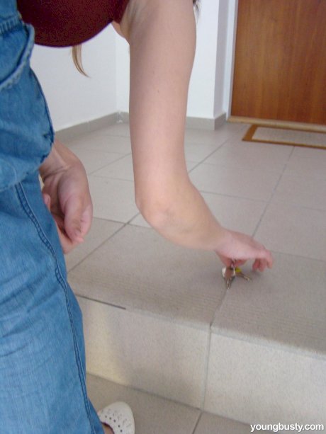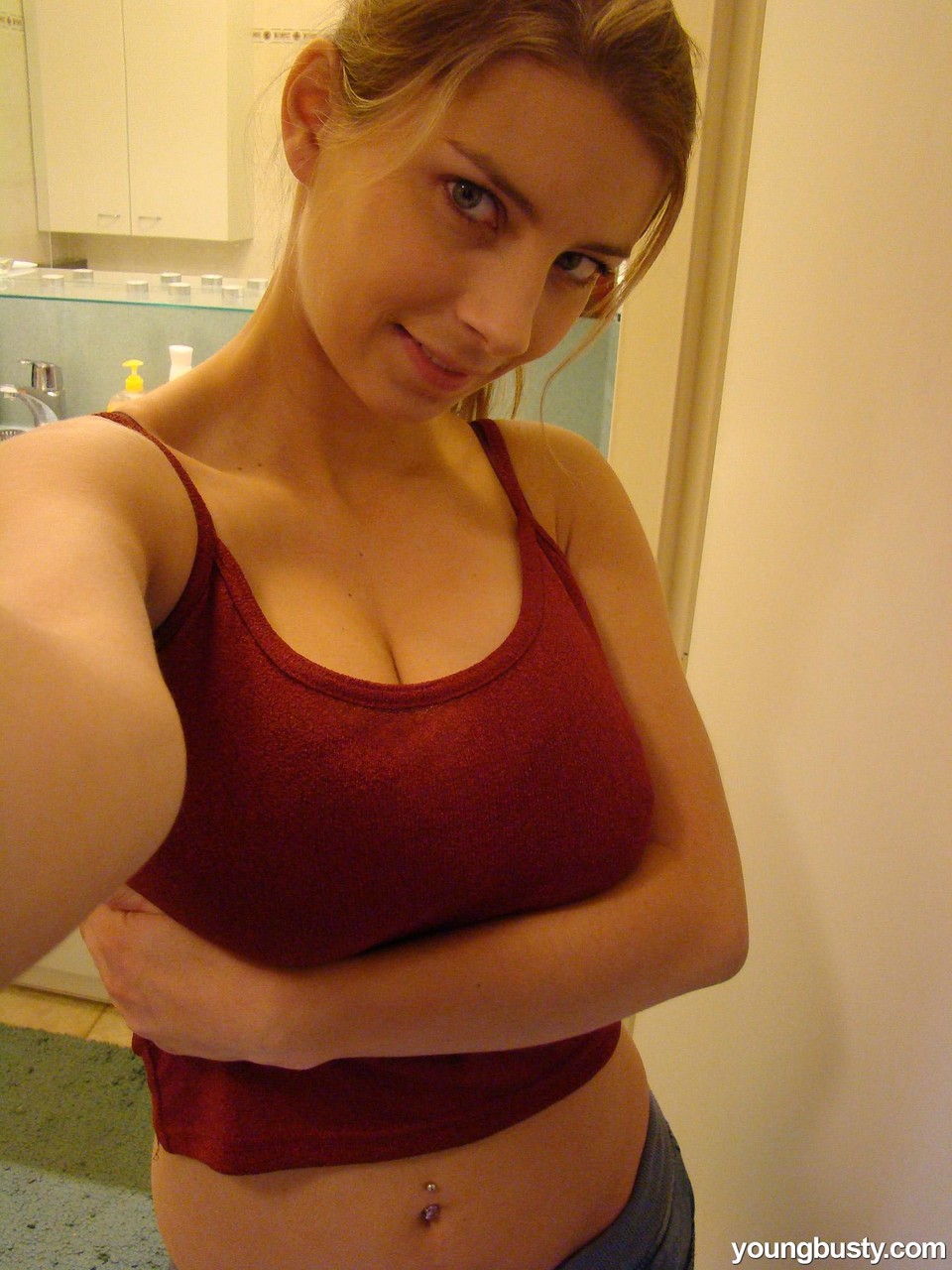 Young busty blonde Kathy displaying her large boobs & her great ass